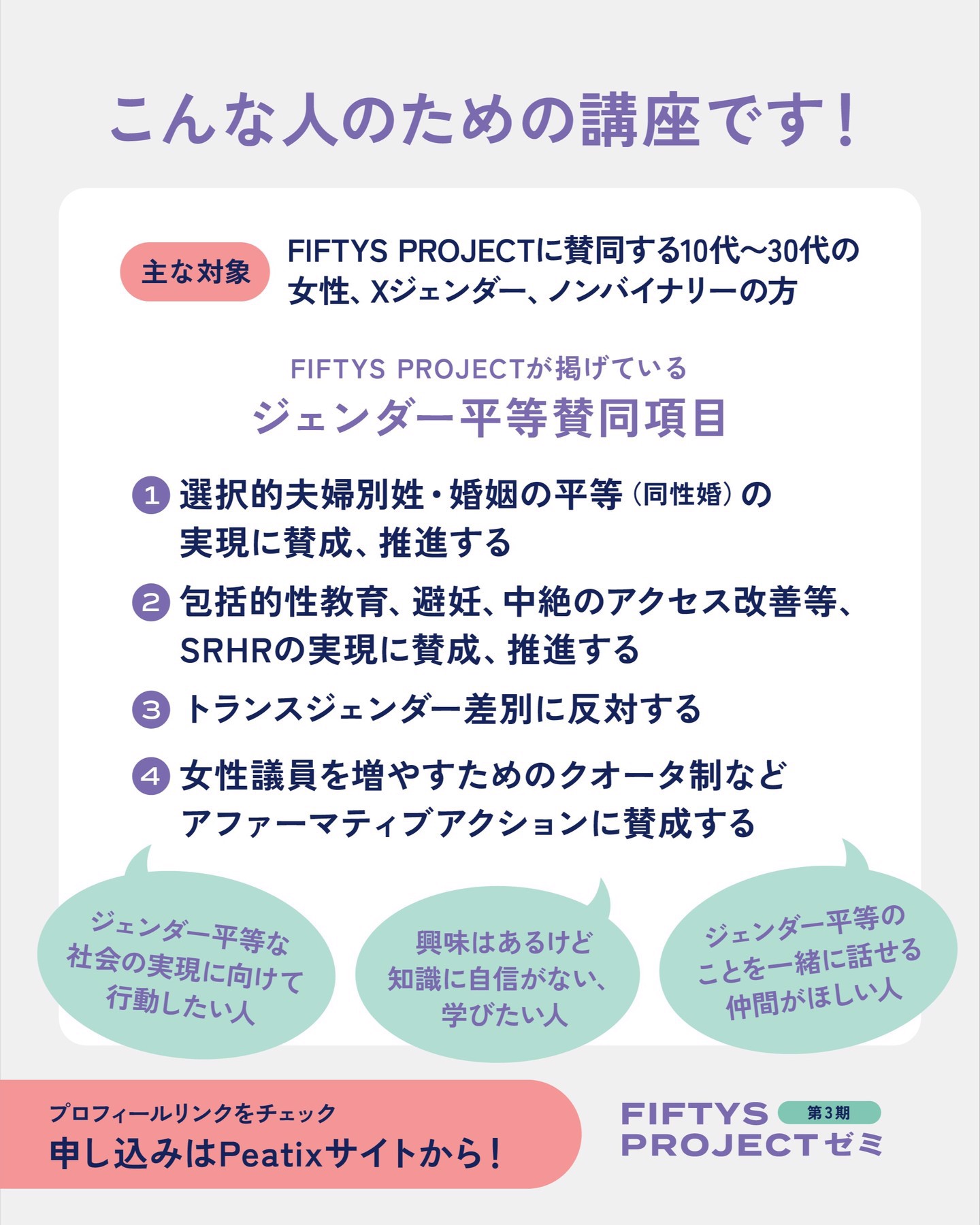 このような想いを抱える人に届いてほしいという思いで、FIFTYS PROJECTはこのゼミを企画しています。